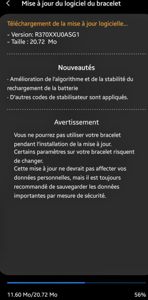 Bản cập nhật Fit e đầu tiên được phát hành vào tháng 5 mang Dim Light cho ban nhạc. Cải thiện thời lượng pin bằng cách điều chỉnh độ sáng màn hình. Vài ngày trước Galaxy Fit e đã nhận được bản cập nhật thứ hai với những cải tiến về độ ổn định. Để có phiên bản mới nhất trên thiết bị theo dõi thể dục Samsung Galaxy Fit của bạn. Hãy truy cập ứng dụng Mặc trên điện thoại thông minh của bạn. Bản cập nhật hiện đang được tung ra tại Pháp. Và trong những ngày tới, nó sẽ được tung ra ở các quốc gia khác.